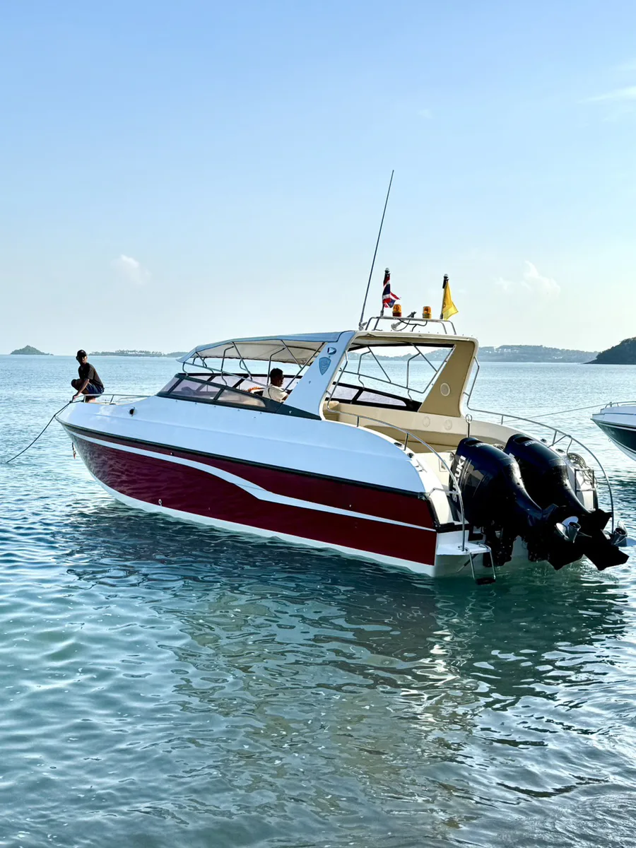 Experience the thrill of a private speedboat charter in Samui aboard this sleek vessel powered by twin 200HP engines. Offering speed and personal service, Ang Thong Marine Park and other famous destinations of Samui Archipelago are just a comfortable ride away.