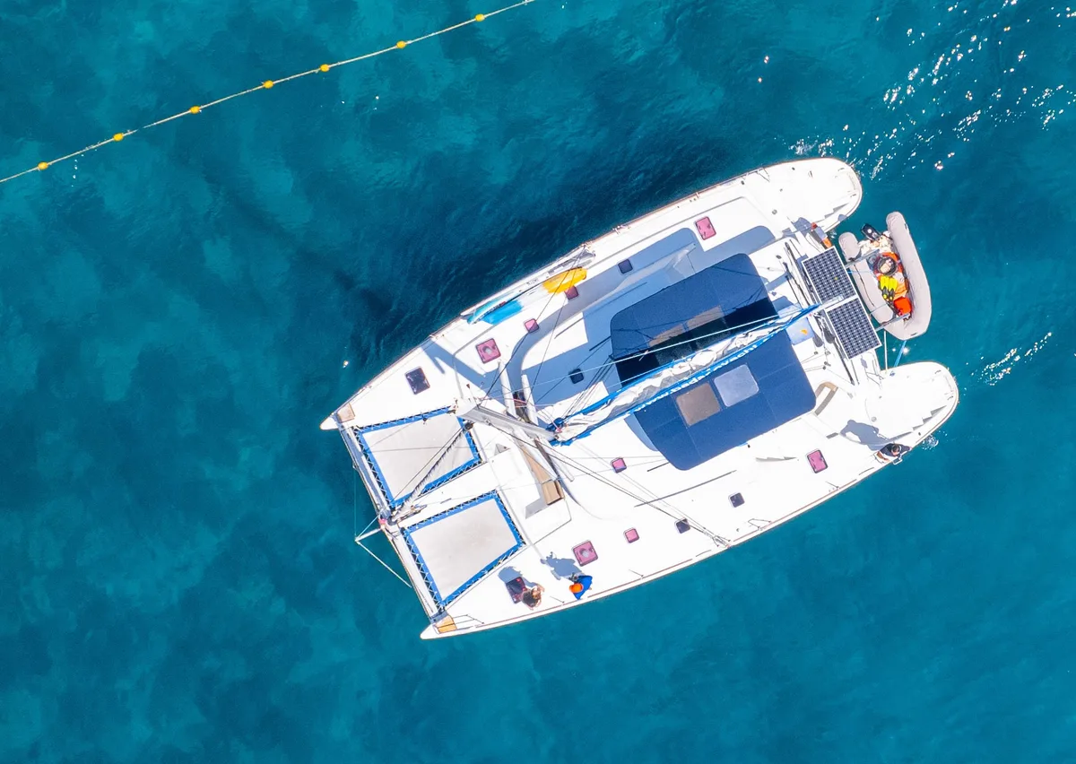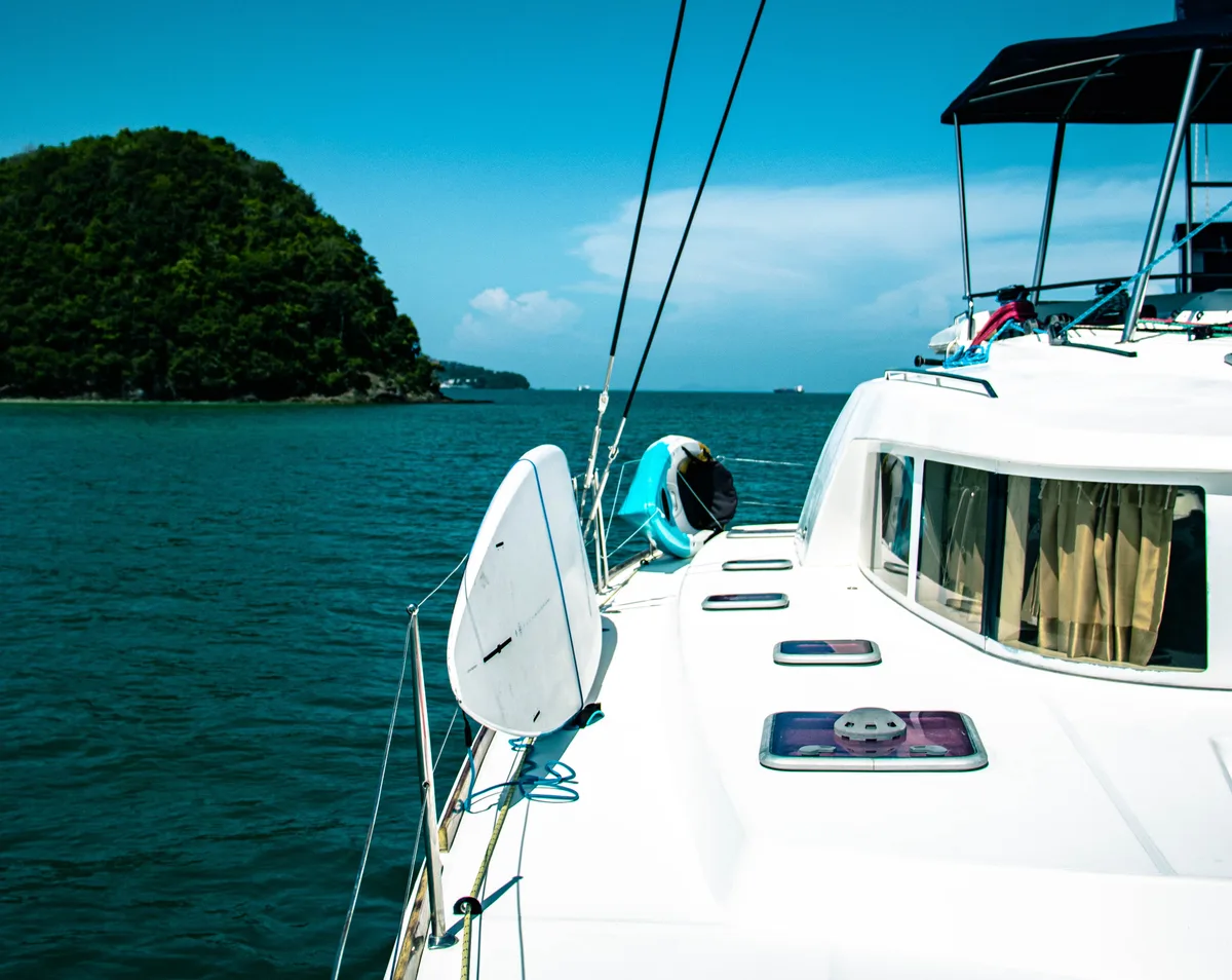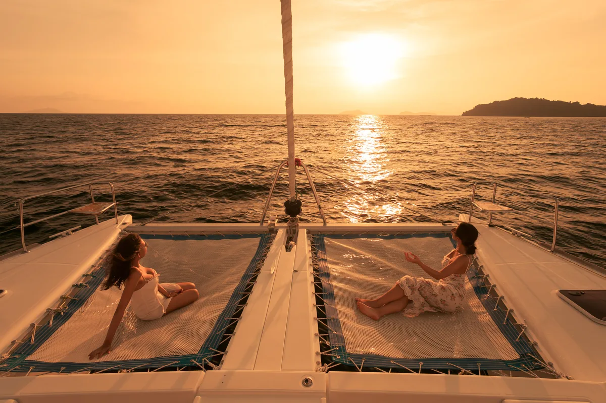 During your 9-hour journey, indulge in activities such as swimming and snorkeling in the crystal-clear waters surrounding Coral Island / Banana Beach (Koh Hey). The front trapezes invite you to relax above the waves, ensuring a tranquil atmosphere for relaxation and enjoyment. With its stability and ample deck space, the Lagoon 44 offers an unparalleled level of comfort, making it an ideal choice for large group yacht charters or corporate yacht charters.
