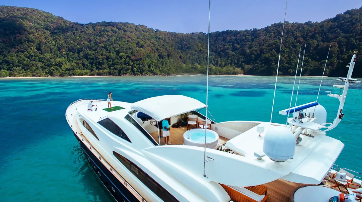 This Superyacht for Charter in Phuket is perfect for trips to Koh Hong Island (Krabi), Koh Racha Yai (Koh Raya Yai), Khai Islands, Naka Islands, Phi Phi Islands, Phang Nga Bay (Khao Phing Kan), Krabi Islands, !