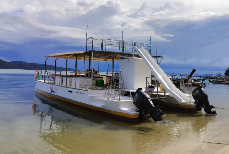 This rather simple charter catamaran offers groups of up to 30 people wonderful hours in the south of Koh Samui – Koh Madsum (Pig Island), Koh Taen, 5 Bird Nest Islands). The luxury of this boat is limited to the friendly and helpful crew. A tour to the pink dolphin watching is also possible.
