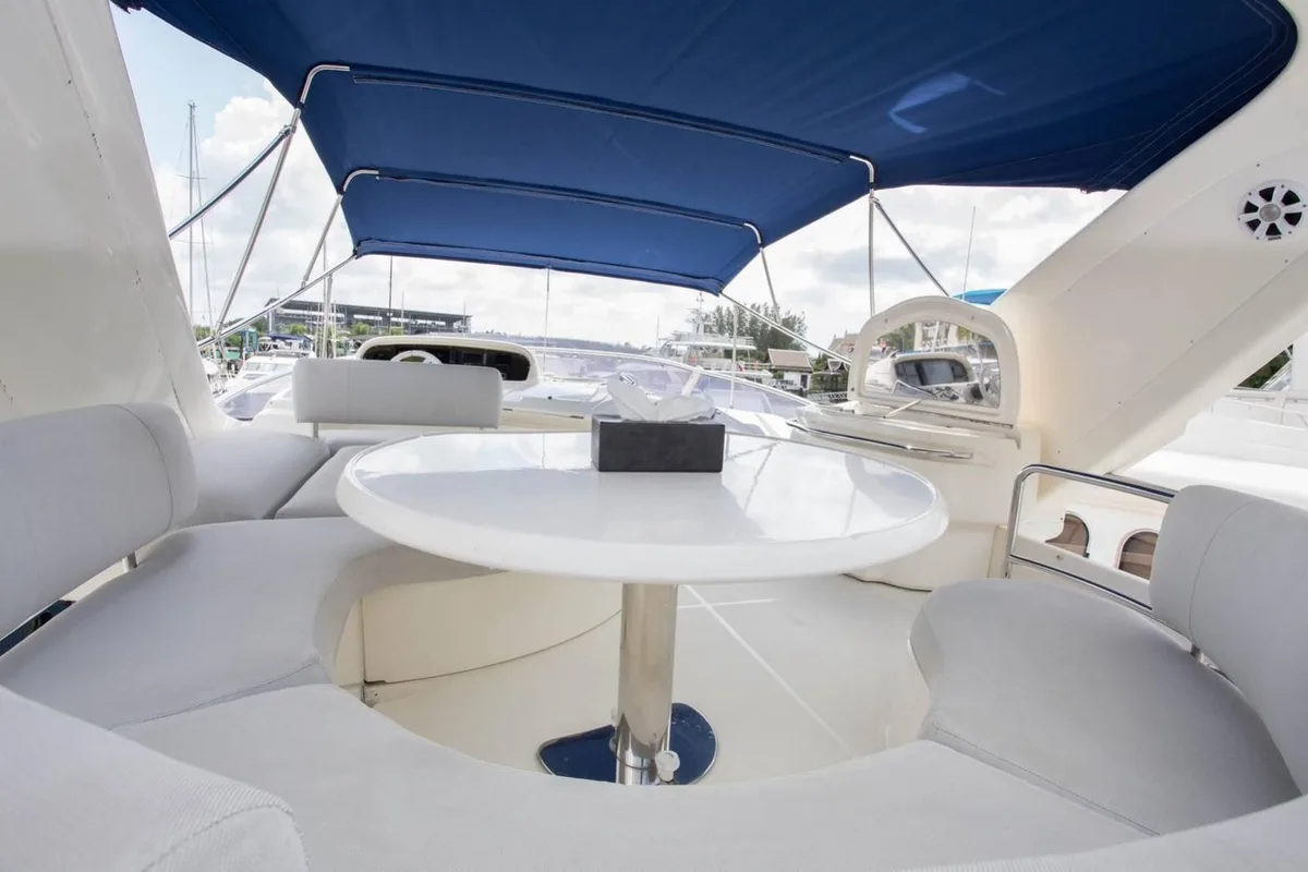 The superbly maintained Azimut 68 Evolution motor yacht is one of the stars of the Phuket yacht rental market: with its elegant Italian lines and well thought-out design all round, it is the perfect cocktail of comfort, performance and style.