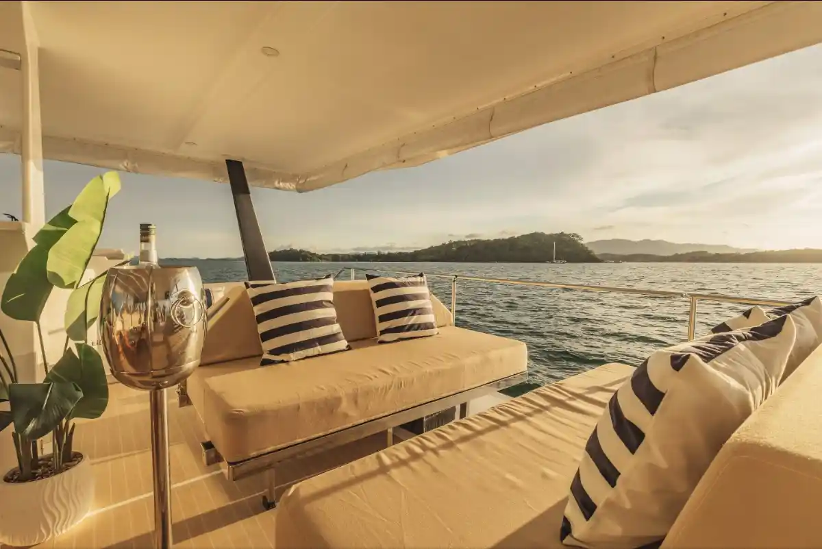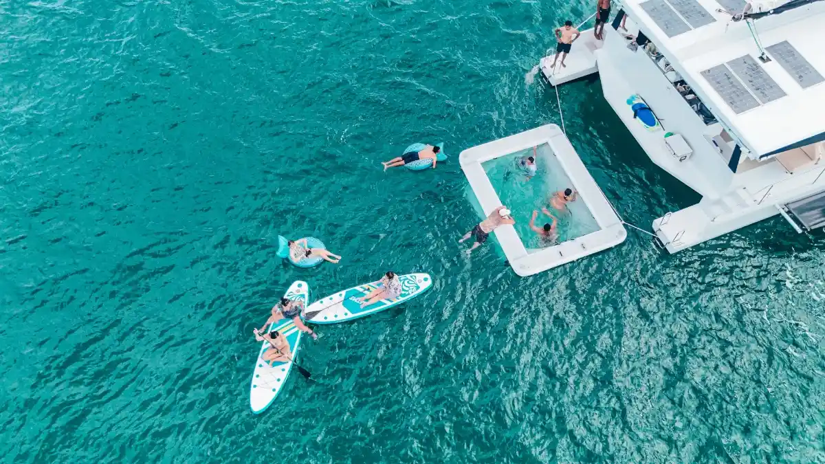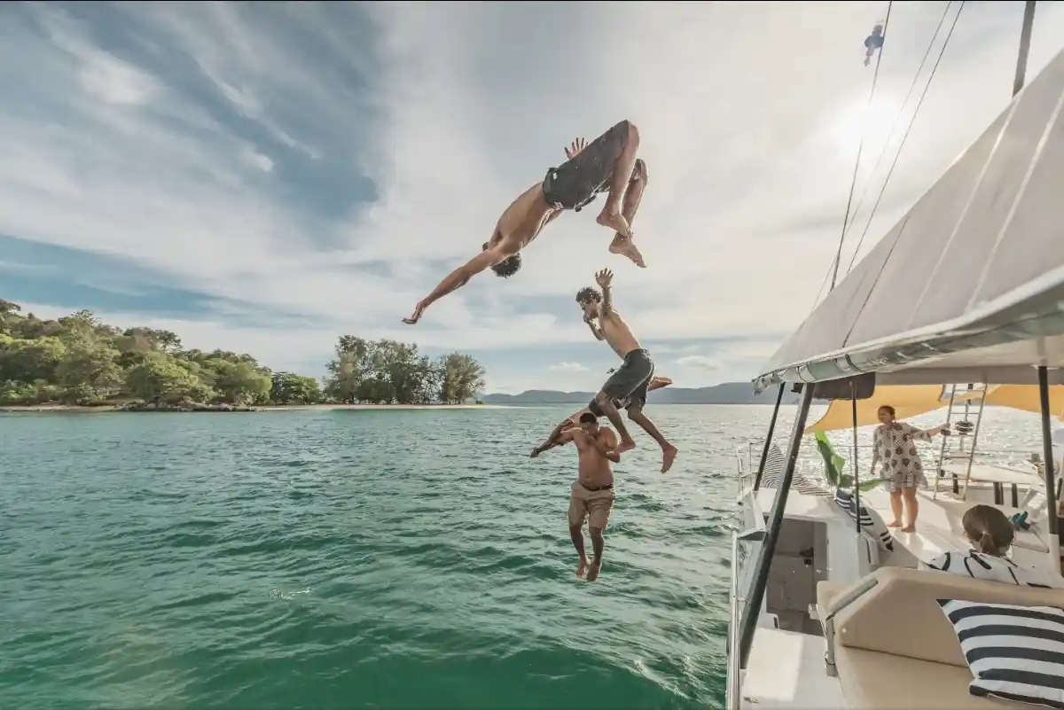 Looking for the perfect place to celebrate your birthday, wedding, or simply life itself? Selectione is the 55ft catamaran made for big, stylish parties. Hosting 10 to 40 guests, the private party catamaran in Phuket offers great drinks and food, as well as plenty of fun toys like a floating pool and an optional slide.
