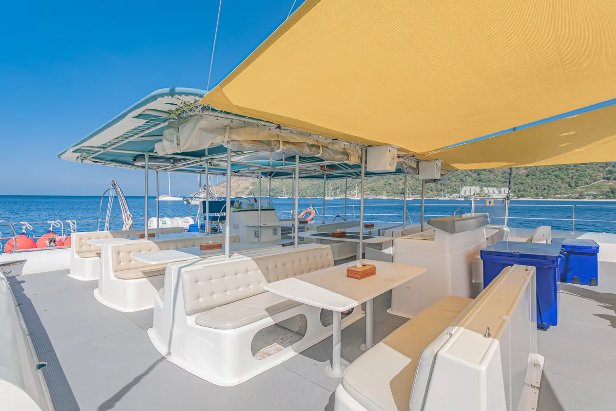What happens in Thai bays… usually ends up on your screensaver! Get ready to dive into a day of sun-soaked bliss on our Floating Beach, a fabulous 75ft Tahiti that can host up to 50 guests. With a flexible itinerary, we’ll whisk you away to the stunning Khai Islands, where the water is so blue, you might just think you've found the fountain of youth.