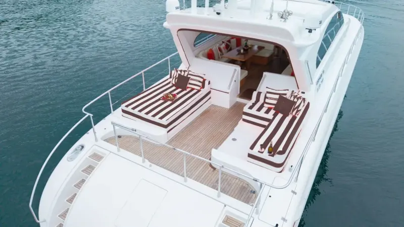 The Oackley handles Thailand's changing weather like the professional vessel she is. This Arno Leopard 75ft superyacht gives you flexibility when tropical conditions shift - one minute you're exploring hidden caves, the next you're sheltering in comfort while rain drums overhead. What we have found in Thai waters is that weather adds character to your charter rather than ruining it.