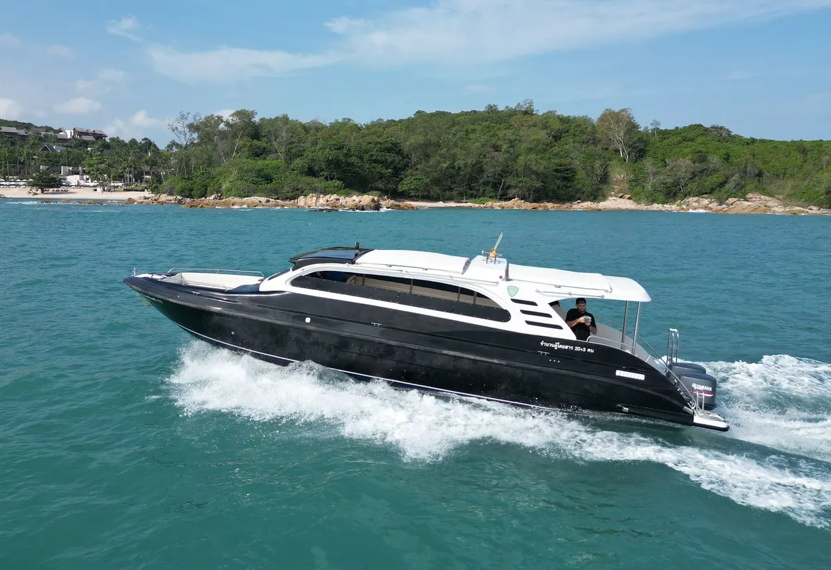 The 30ft single engine speedboats for charter at Samui are ideal for couples and small families in search of affordable Half-Day island hopping excursions that explore the deserted islands of the South-West. These Private charters include fishing, snorkeling, island hopping, beach picnics and even dolphin spotting for up to 10 passenger.
