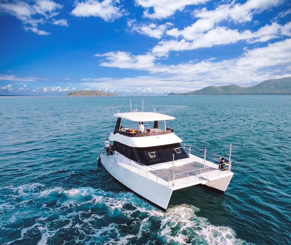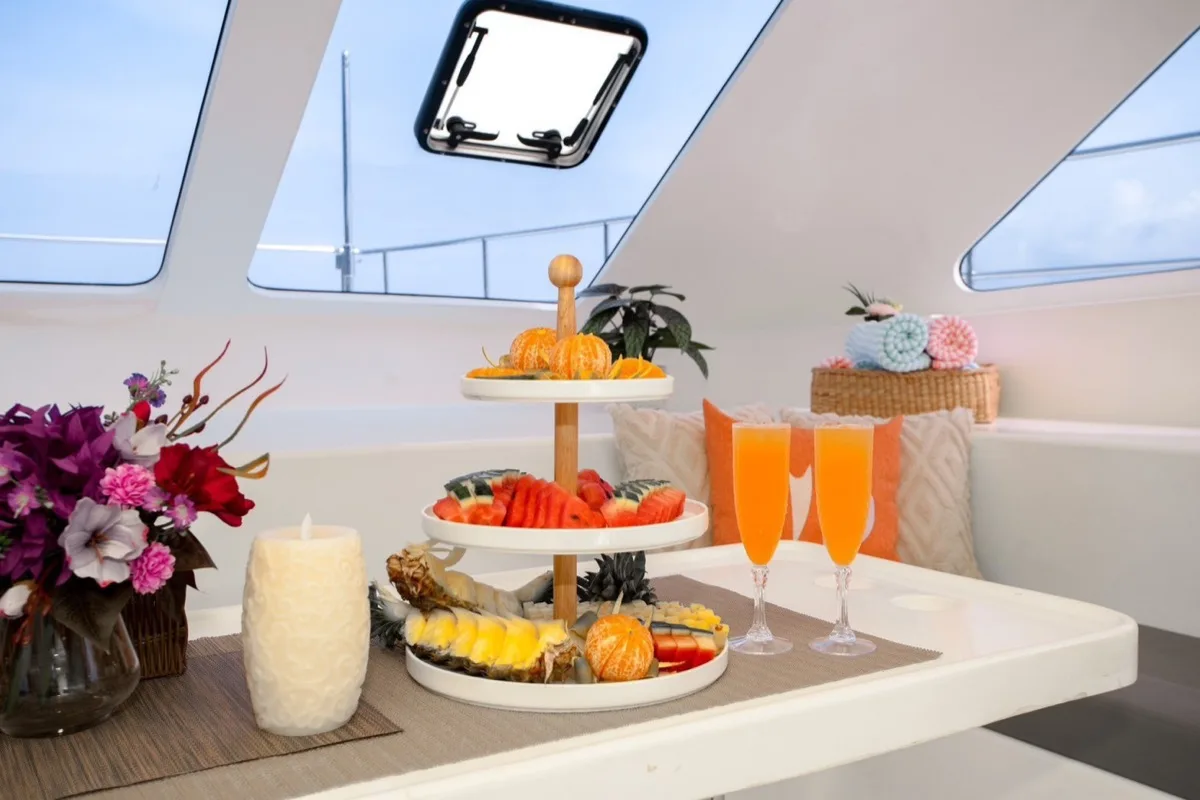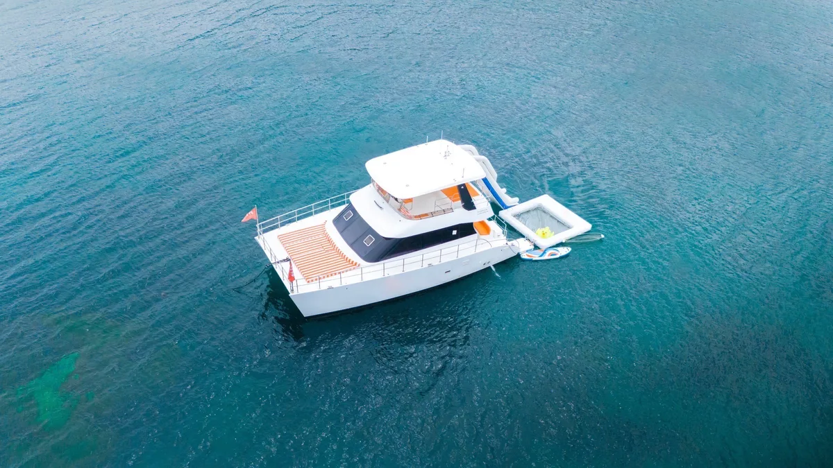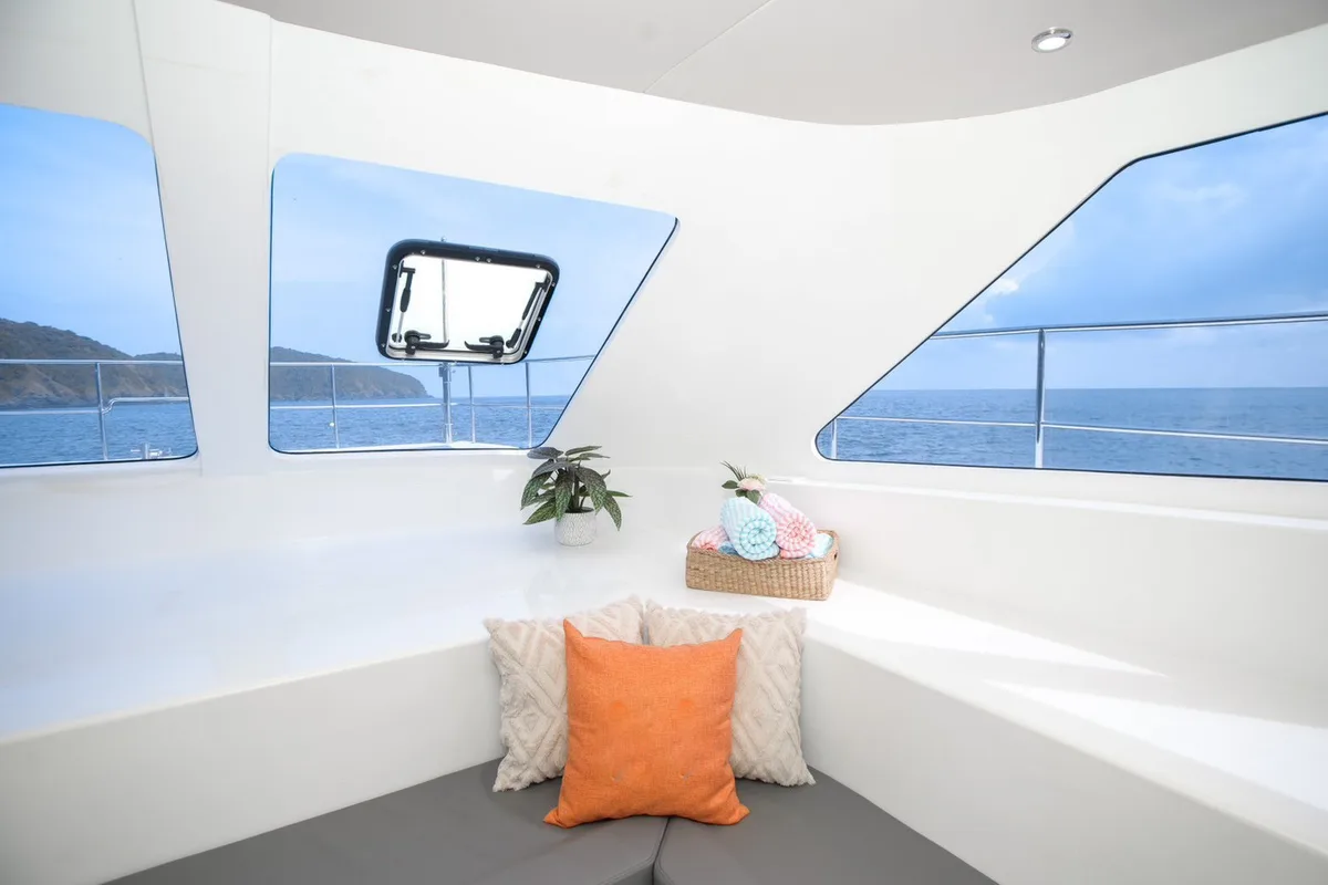 The Floeth 48 Power Catamaran is a spacious 48-foot vessel for budget charter in Phuket offering comfortable outdoor areas for relaxing and dining. With capacity for up to 40 guests, it's ideal for group celebrations and day trips.