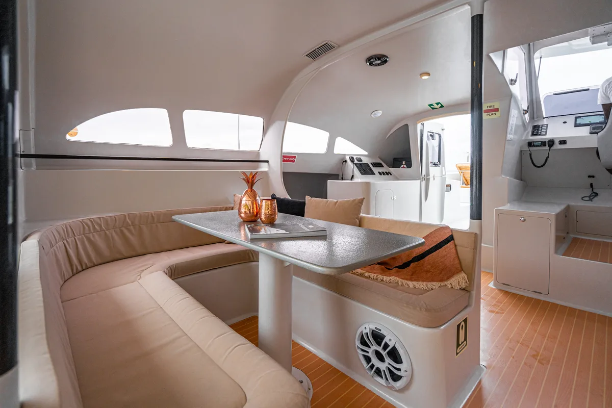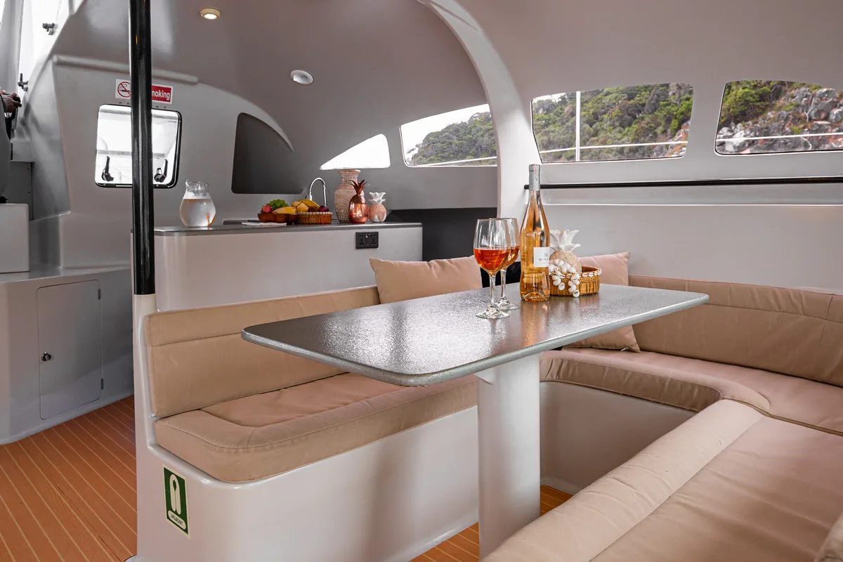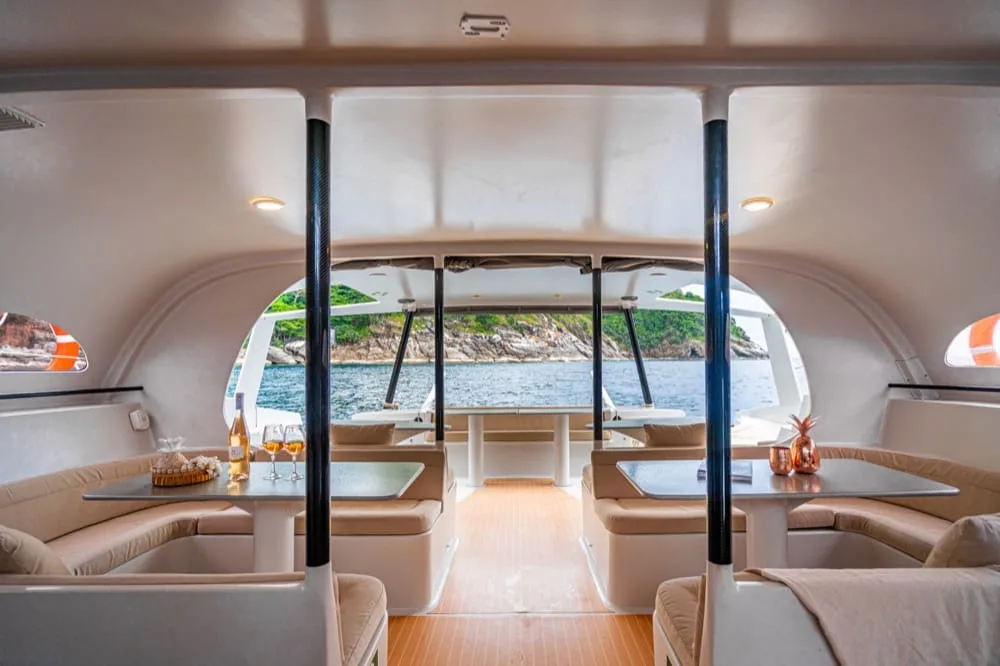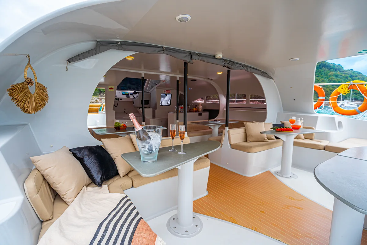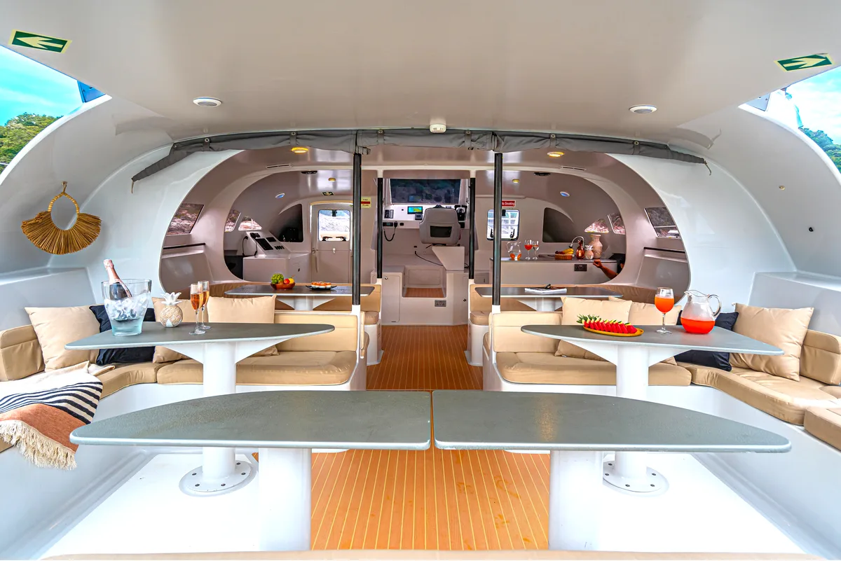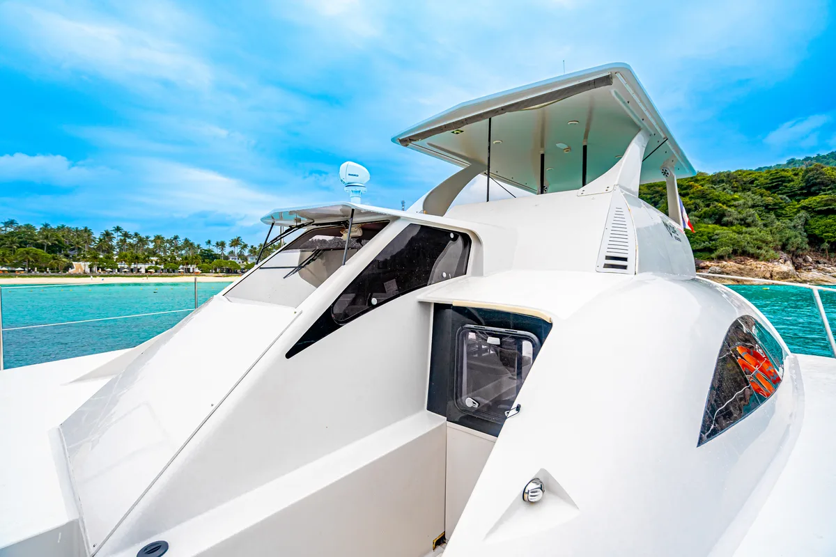 Rollende Wellen und sonnengetränkte Tage in Thailand sind wie eine endlose Party, bei der der Ozean sowohl Ihr Tanzparkett als auch Ihre Kulisse ist. Stechen Sie in See mit der eleganten Black Panther, einem atemberaubenden Power-Katamaran 47ft, gemacht für Abenteuer und Lachen mit bis zu 30 Freunden oder der Familie. Ihr erstes Ziel? Die atemberaubende Coral Island / Banana Beach (Koh Hey). Mit kristallklaren Gewässern, die perfekt zum Schnorcheln sind, finden Sie leuchtend bunte Fische, die jeden Regenbogen vor Scham erröten lassen könnten.