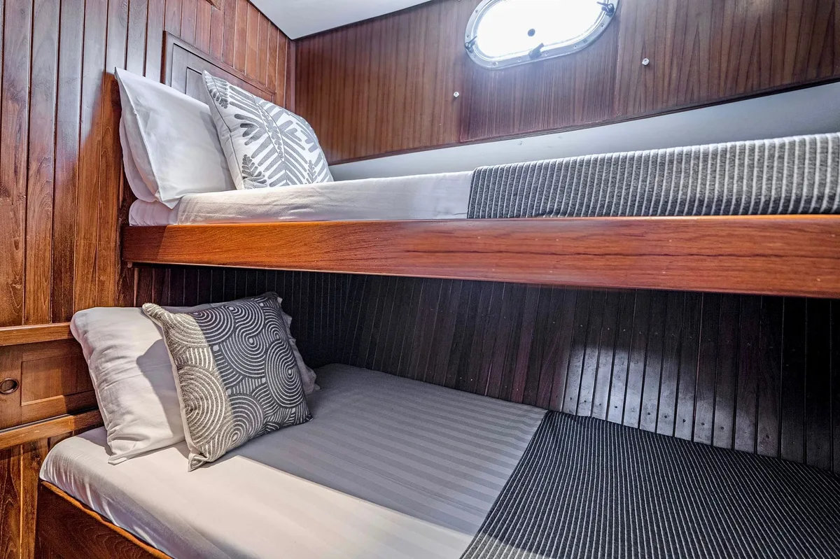 The Grandfather is a 53ft Grand Banks style motor yacht that was completely modernized in 2021. He comfortably accommodates up to 20 guests, while the large flybridge alone can comfortably accommodate 10 guests, and the fully air-conditioned master cabin and the twin bung cabin offering cosy space for overnights for 4 guests.