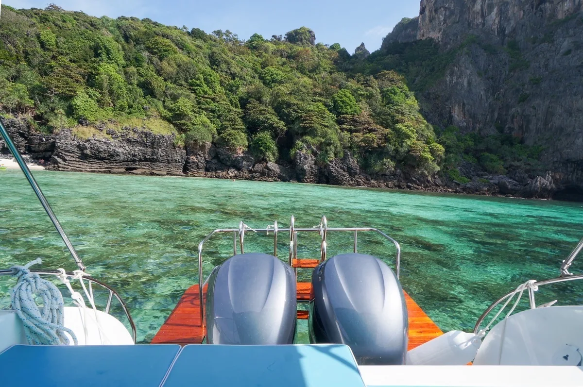 Cruise the crystal waters of Krabi in a custom speedboat, exploring the stunning Hong Island and pristine Lao Lading with up to 10 guests.